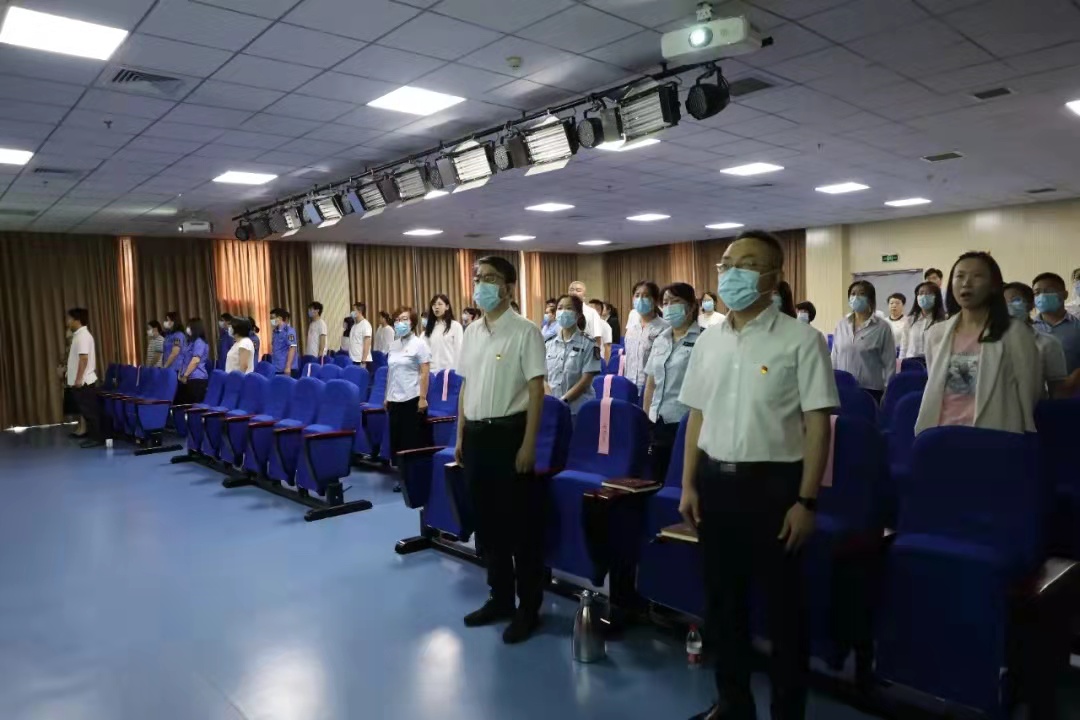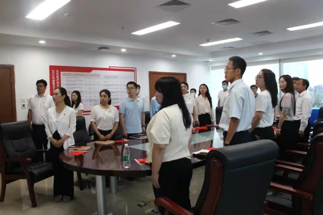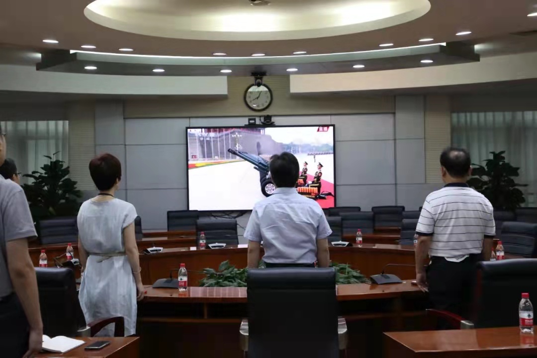 △党政办公室全体党员和入党积极分子起立唱国歌