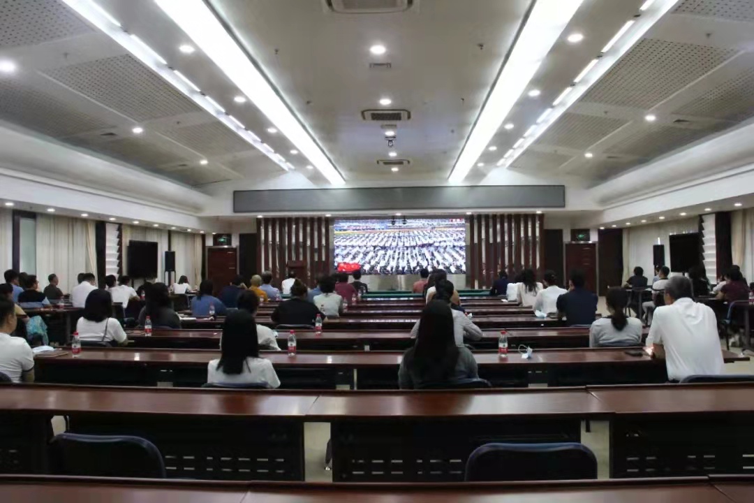 北京经开区机关单位组织党员干部及群众集中收看庆祝中国共产党成立100周年大会。