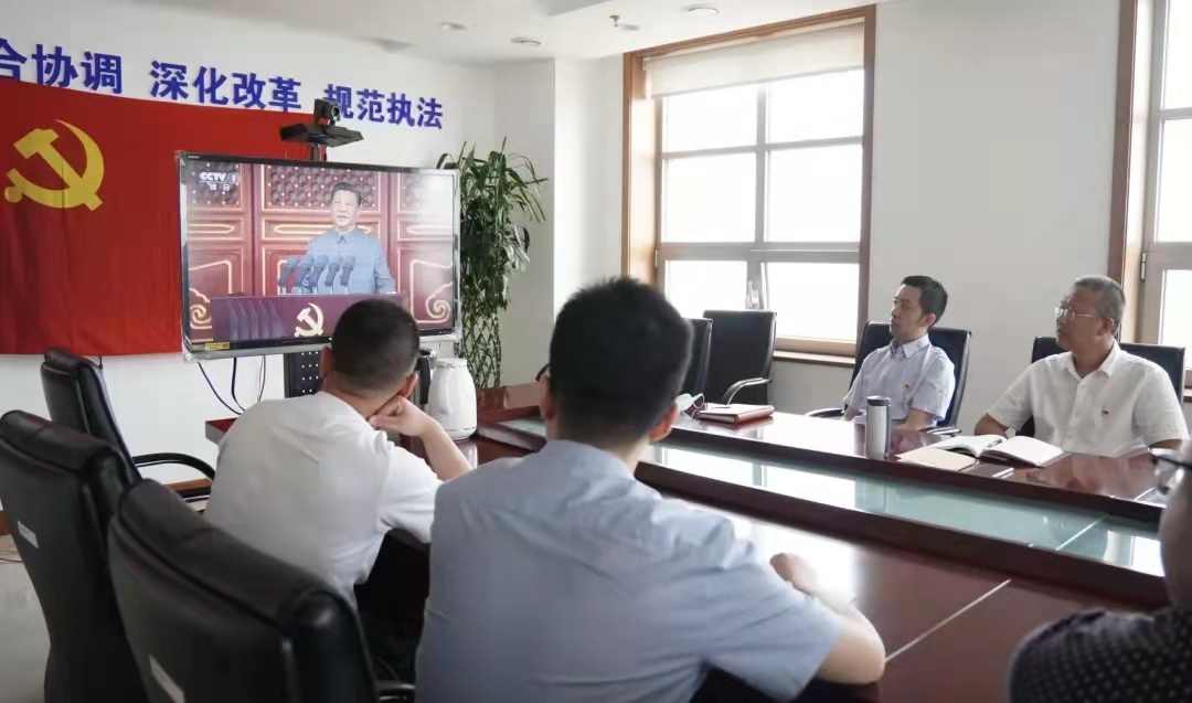 驻区职能局组织党员干部及群众代表集中收看庆祝中国共产党成立100周年大会。