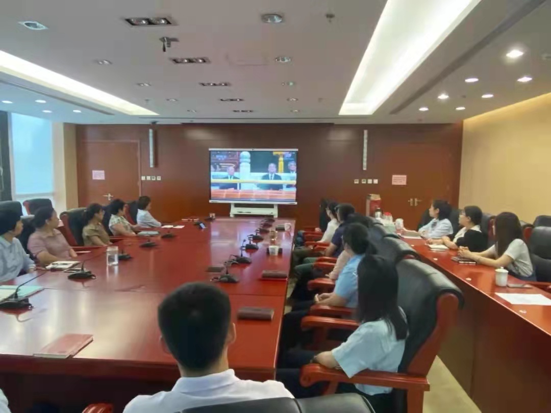 △商务金融局、总工会党员干部认真收看庆祝大会直播