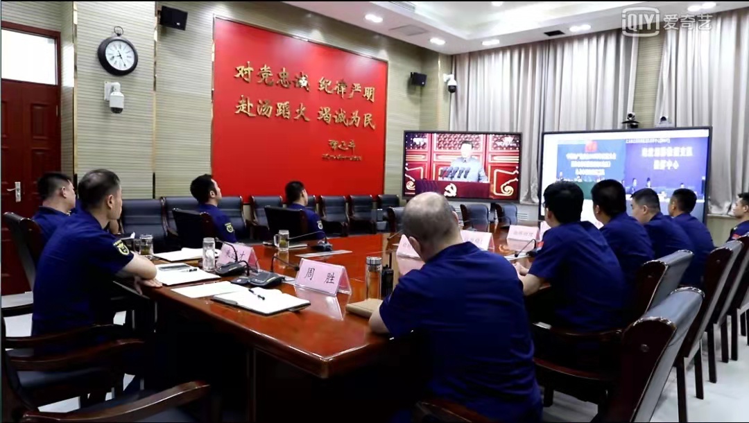 △北京经开区消防救援支队消防指战员一起观看庆祝大会直播
