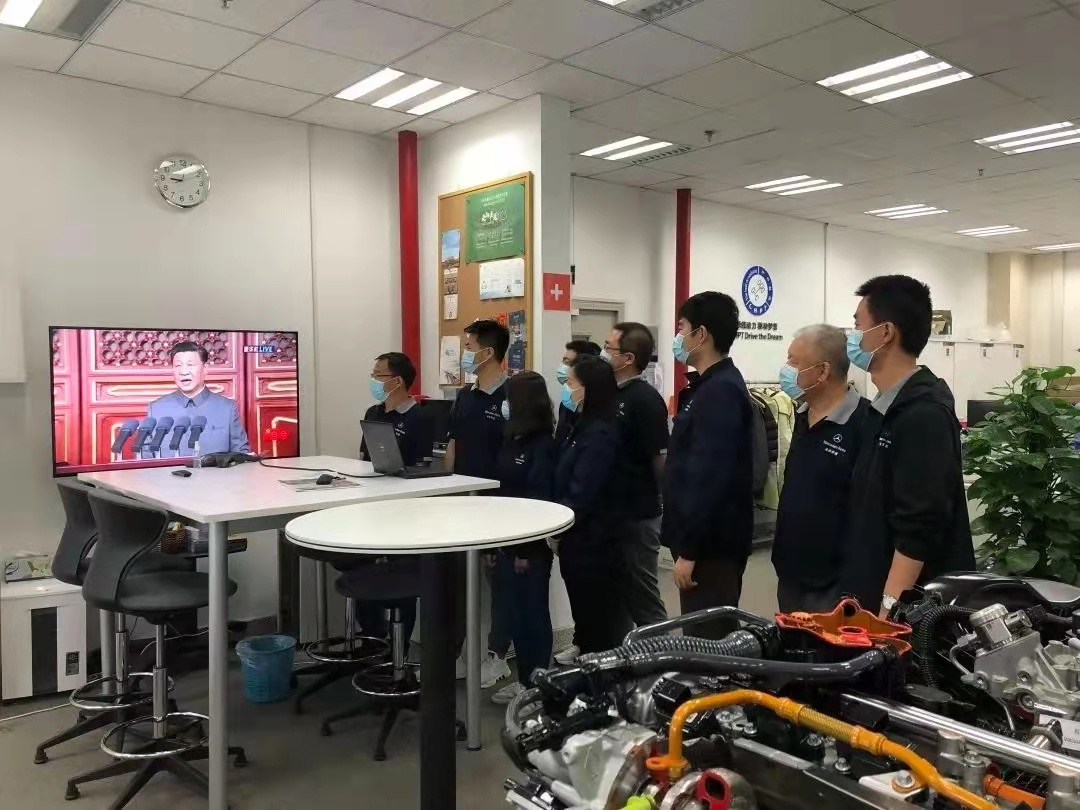 △北京奔驰党员及群众代表收看庆祝大会直播