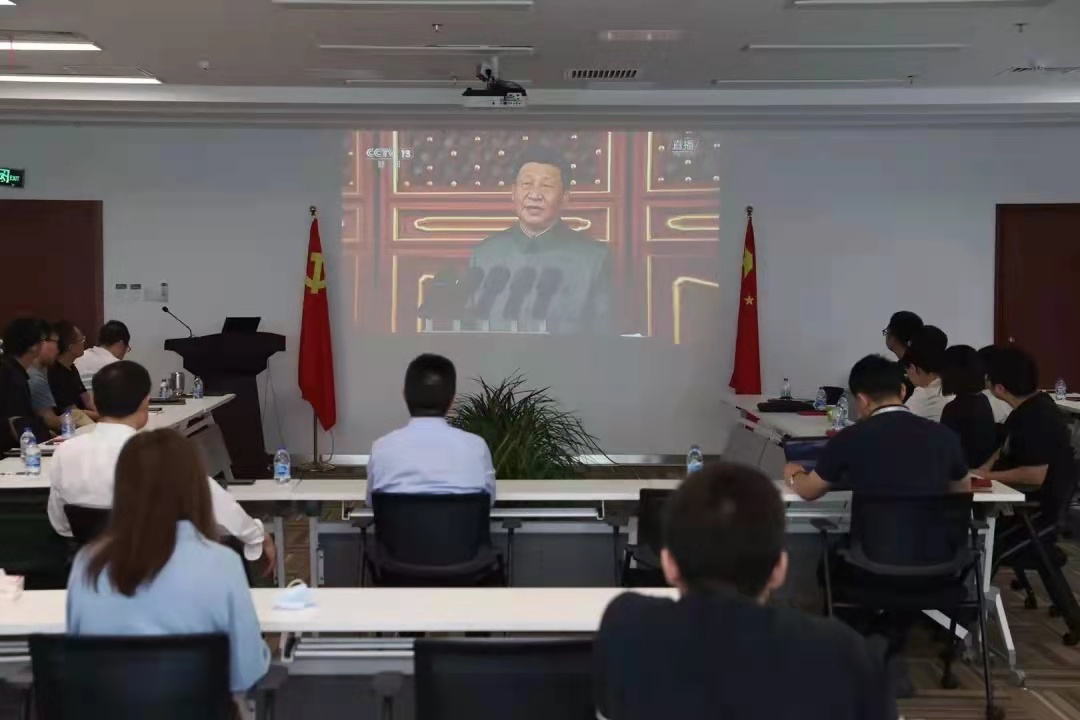 北京经开区企业组织党员、入党积极分子及群众代表,集中收看庆祝中国共产党成立100周年大会。