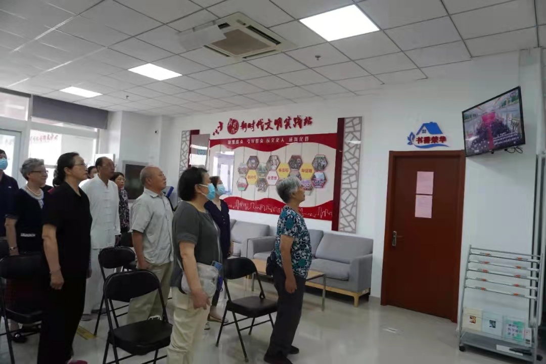 △二十余名党员群众在上海沙龙社区居委会观看直播
