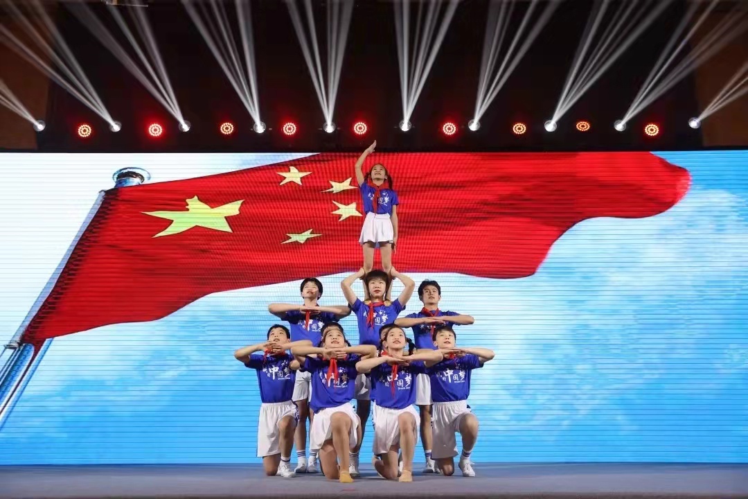 随后,来自中国杂技团的小演员们在飘扬的五星红旗的映衬下,表演了一个又一个高难度的动作,用精彩的表演向建党百年送上美好祝福,引发现场阵阵惊叹和热烈掌声。