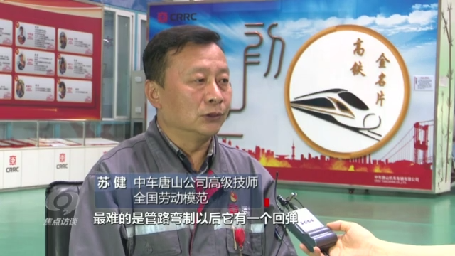 苏健是一名高铁产业工人,他的工作是为高铁列车制作、安装刹车制动管。制动管事关高铁列车的安全,一列高铁上,有1100多根制动管,全长2400多米,每根制动管平均有6个弯,最多的超过15个弯,都要由他和同事们在弯管机上加工制作后再装到车上。