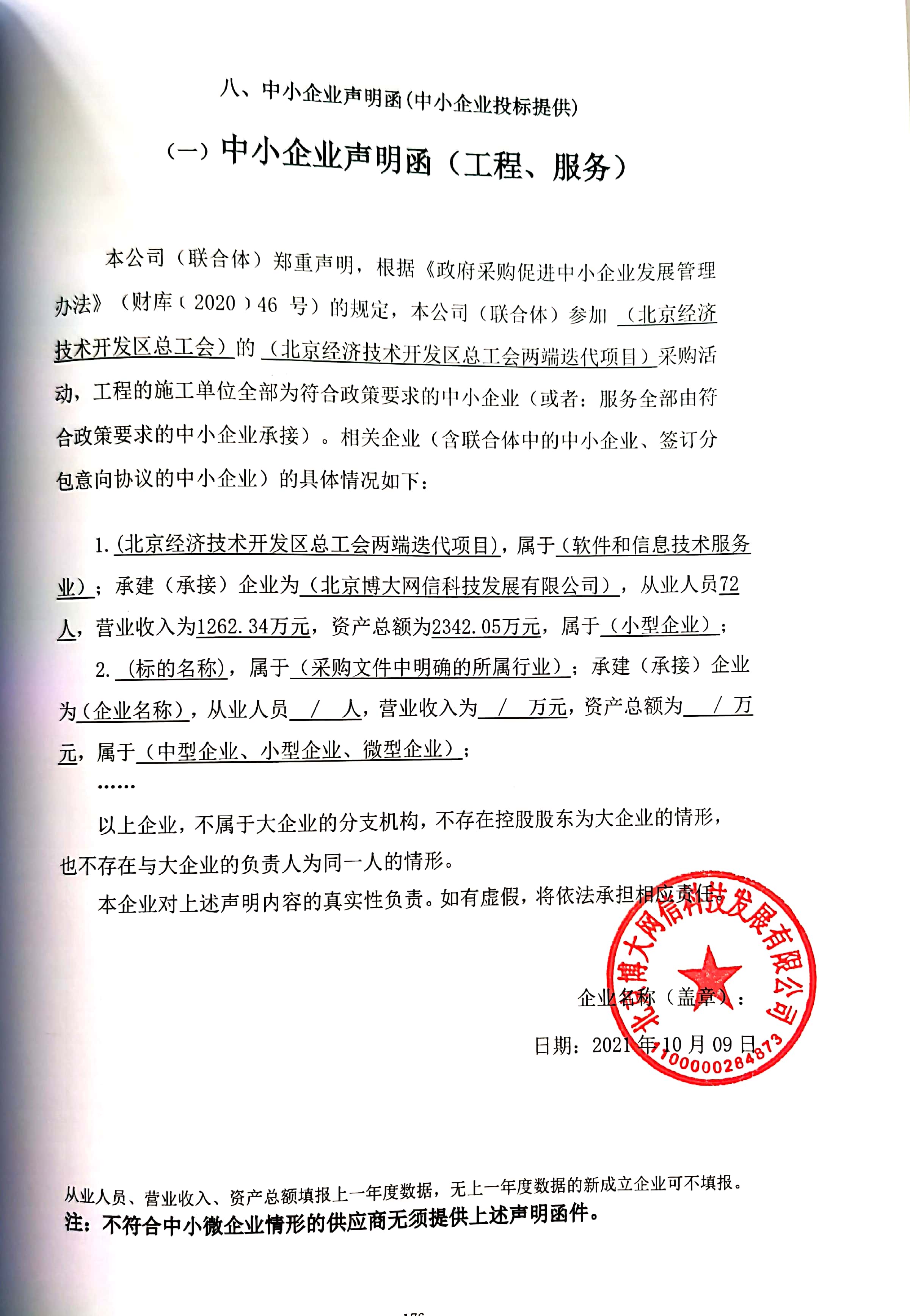 2.中小企业声明函