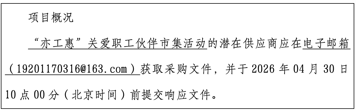 项目名称:“亦工惠”关爱职工伙伴市集活动
