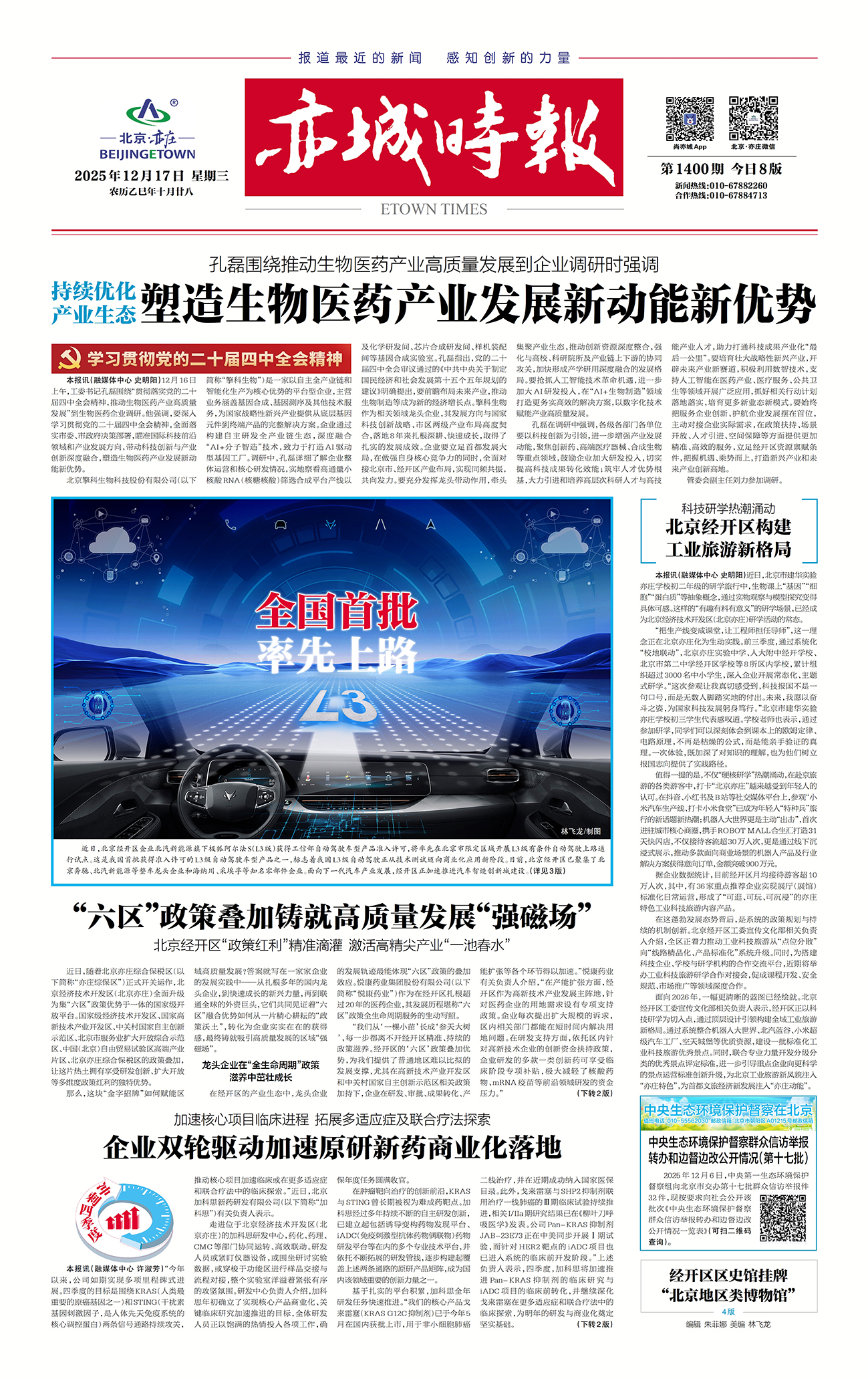 北京经开区以任务清单化提速“两区”建设