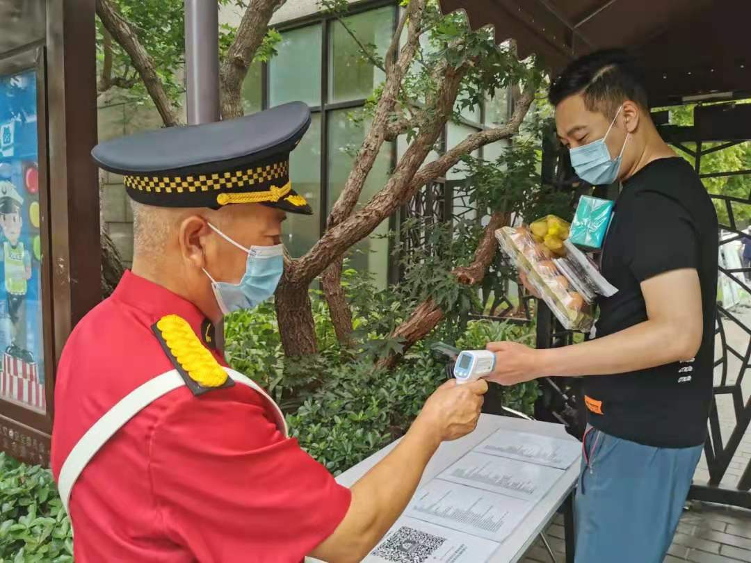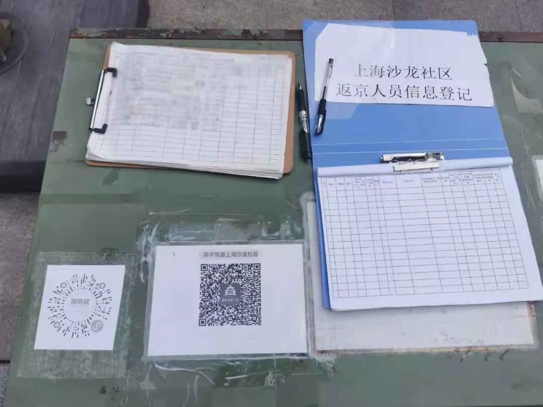 扫码、测温、登记……8月3日上午9点,记者来到上海沙龙社区北门看到,正值居民出入高峰时段,门口保安严格落实防疫相关措施,为每一位居民及快递员、外卖小哥测温,指引大家做好行程码、健康宝扫码,并及时提醒未戴口罩或佩戴不规范的人员正确做好防护。与此同时,社区入口处的桌子上还放有来访人员进出登记表、返京人员信息登记表,及时做好相关人员信息登记。