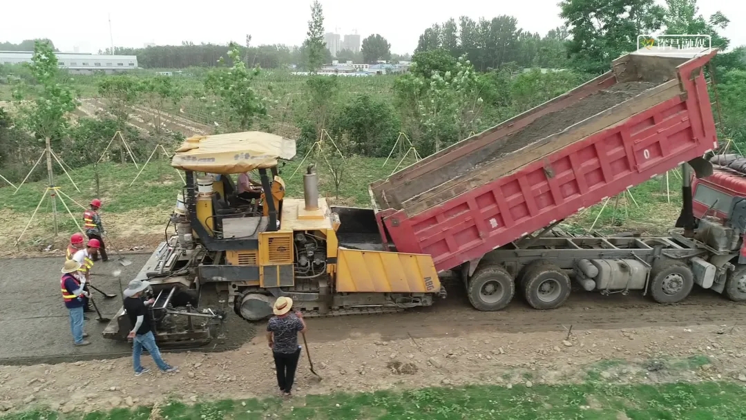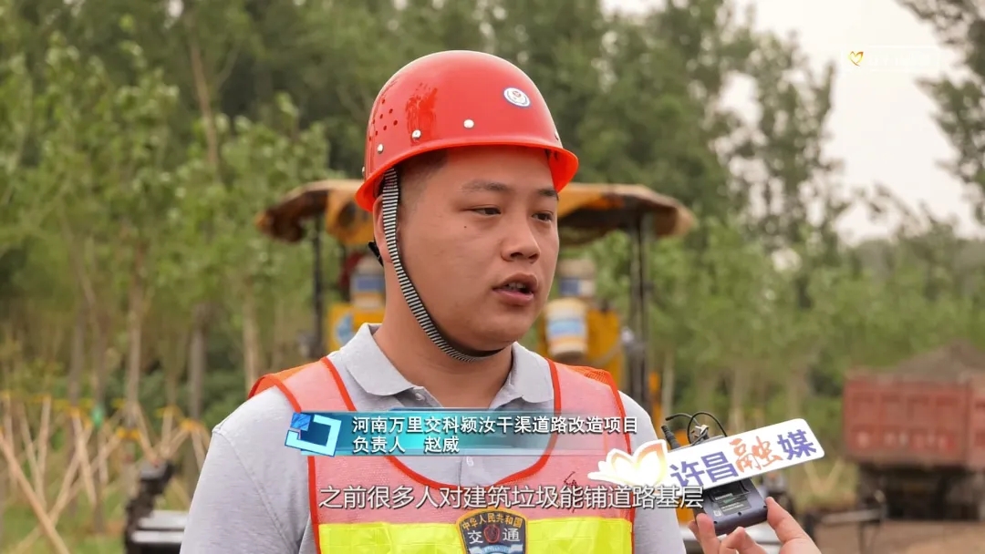 在许昌颖汝干渠堤顶路提升改造工程庞庄段施工现场,施工人员正在用建筑垃圾制成的再生水稳铺筑路基。许昌颍汝干渠堤顶路提升改造项目主线道路基层,也是首次利用建筑垃圾回收再利用技术,应用建筑固废再生水稳路面材料。