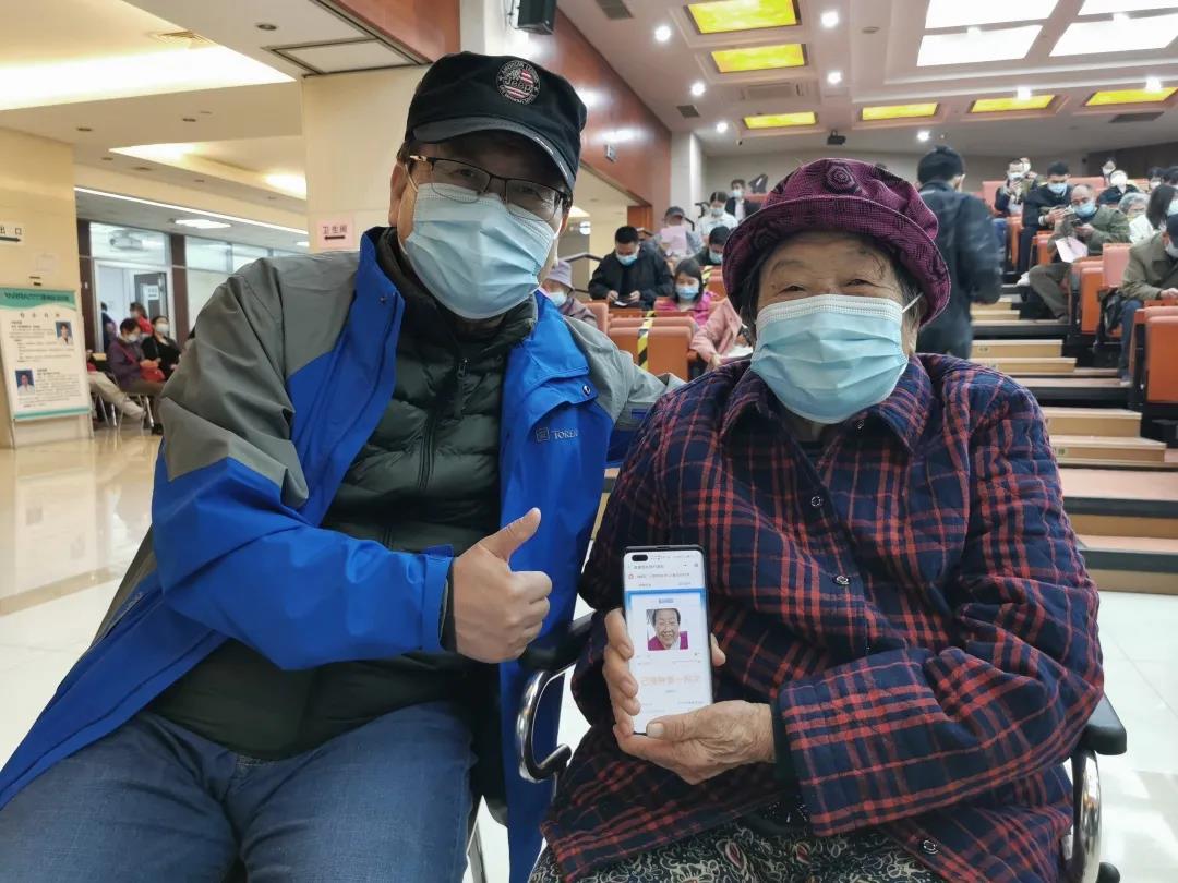 这对党员母子是荣华街道天华园二里社区居民,母亲冀金亭今年已有79年党龄。因腿脚不太利索,当天,她坐在轮椅上,由儿子推着前往医院。别看老人年龄不小,但身子骨十分硬朗,不仅血压正常,也没有什么慢性病、禁忌症,于是,借助接种点为特殊人群提供的“绿色通道”服务,老人很快便完成了第一针疫苗接种。不过,这次接种其实也并非从一开始就一帆风顺。原来,为尽快接种疫苗,儿子从3月底开始就先后帮她预约过两次,但都因临时有事最终取消。知道母亲心里挂念,这次又看到社区的报名通知后,他便立刻帮母亲进行了第三次预约。