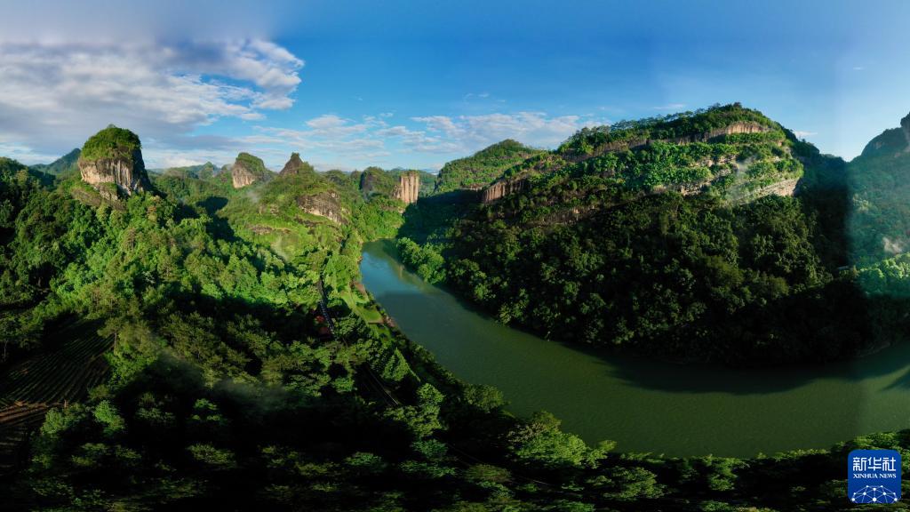 这是武夷山国家公园九曲溪两岸景观(6月6日摄,无人机照片)。