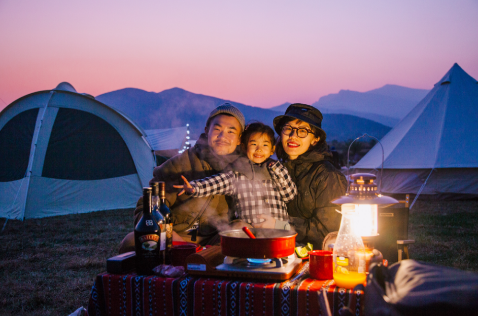 孔婷婷家庭。拍摄于北京房山露营基地