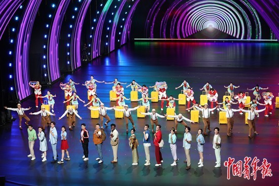 9月19日,北京艺术中心,天涯共此时·2024北京文化论坛专场文艺演出,青年演员表演开场歌舞《遇见中国》。当晚的文艺演出主题为“文化通心,携手同行”,融汇歌舞、戏曲、杂技、器乐表演等多种艺术类型。中青报·中青网记者 曲俊燕/摄