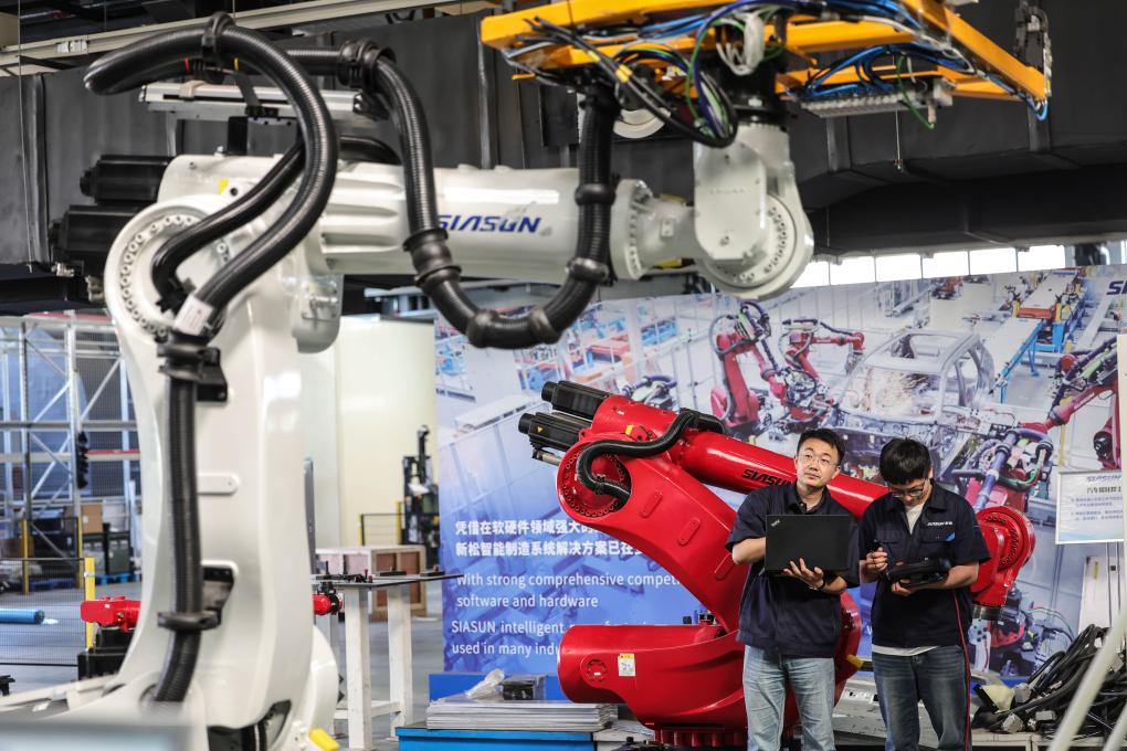 2024年6月3日,沈阳新松机器人自动化股份有限公司,机器人研发工程师在调试。 新华社记者 潘昱龙 摄