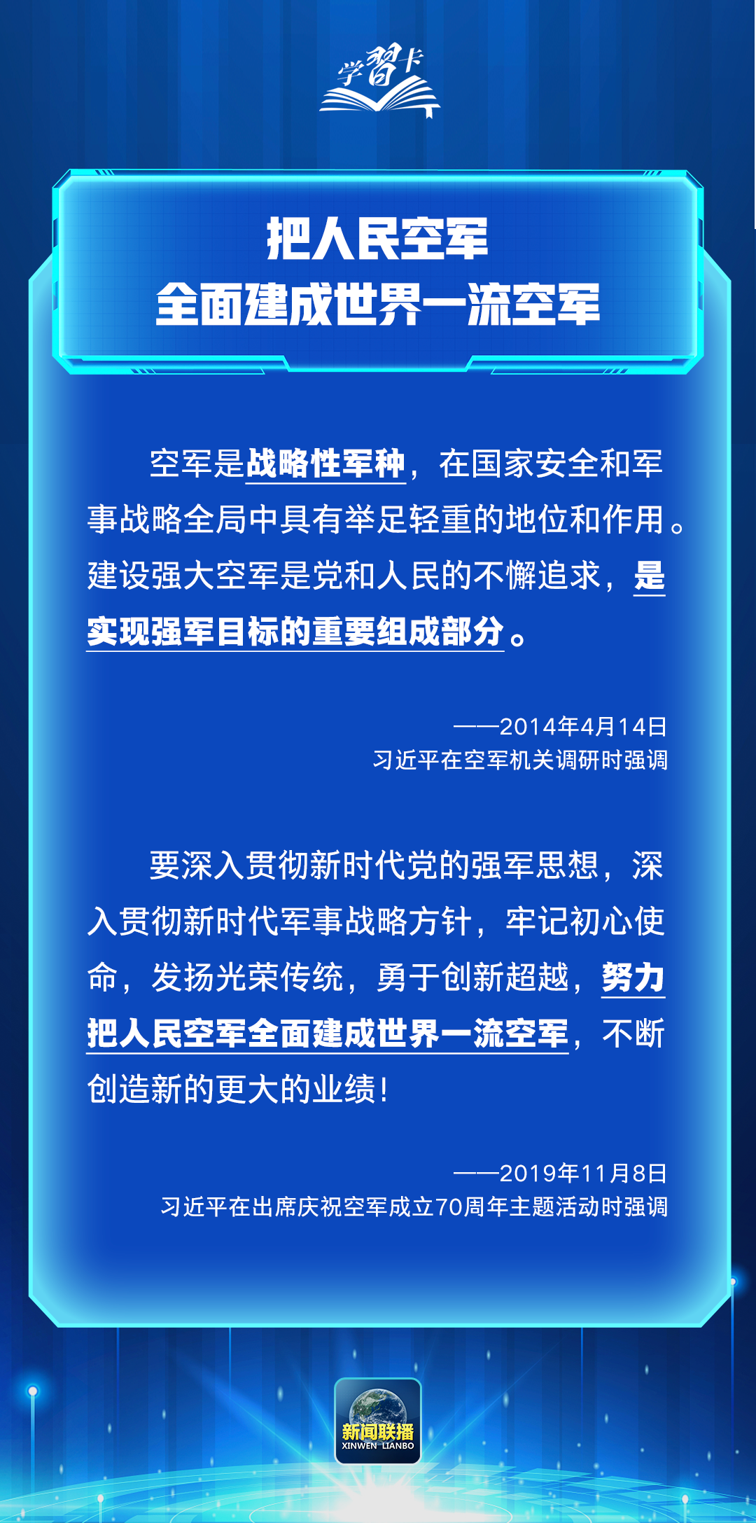 2024年11月11日,是中国人民解放军空军成立75周年纪念日。在党的坚强领导下,一代代空军官兵胸怀凌云壮志,搏击万里长空,推动空军建设取得举世瞩目的成就,为维护国家主权、安全、发展利益建立了不朽功勋。如何把人民空军全面建成世界一流空军?一起学习↓