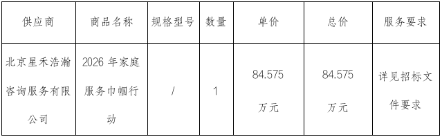 服务范围:负责2026年家庭服务巾帼行动,包括:建设家庭教育指导站、打造精品企业研学课程、联动企业开展家庭日活动、实施优良家风传承行动四个子项目。